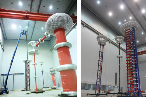 主要試驗(yàn)設(shè)備:1500kV工頻試驗(yàn)變壓器,1500V標(biāo)準(zhǔn)電容,4400kV沖擊電壓測(cè)量系統(tǒng),±2400kV直流高壓發(fā)生器,彎曲負(fù)荷試驗(yàn)裝置,50kA大電流試驗(yàn)裝置淋雨試驗(yàn)裝置,數(shù)字局部放電儀,精密高壓電容電橋等。